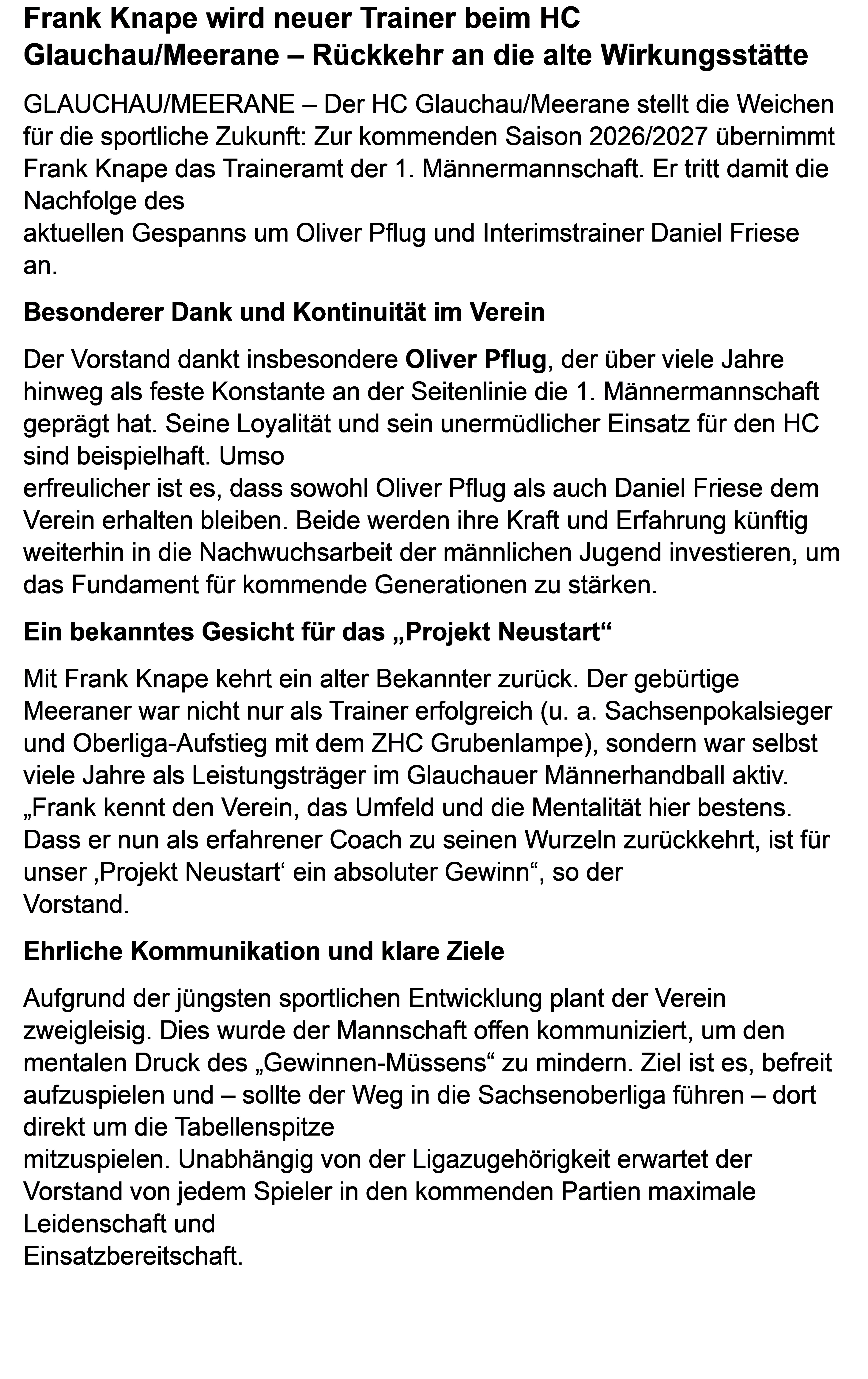 Martin Lux wurde in der Saison 2021/22 zum Trainer der 1. Männermannschaft berufen. Am 18.11.2021 wurde das Präsidium durch die Mitgliederversammlung erneut bestätigt: Dr. Bodo Kreutzmann (Präsident), Markus Pesth (1.Vizepräsident), Rene Nowak (2.Vizepräsident) und Karsten Richter (erweiterter Vorstand) sowie Manfred Timplan (erweiterter Vorstand).
