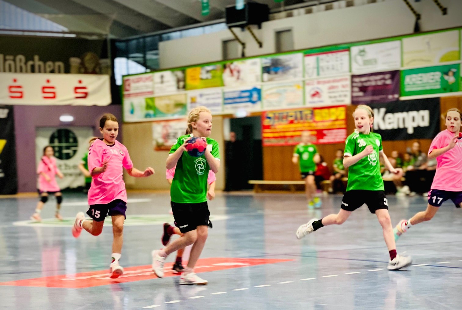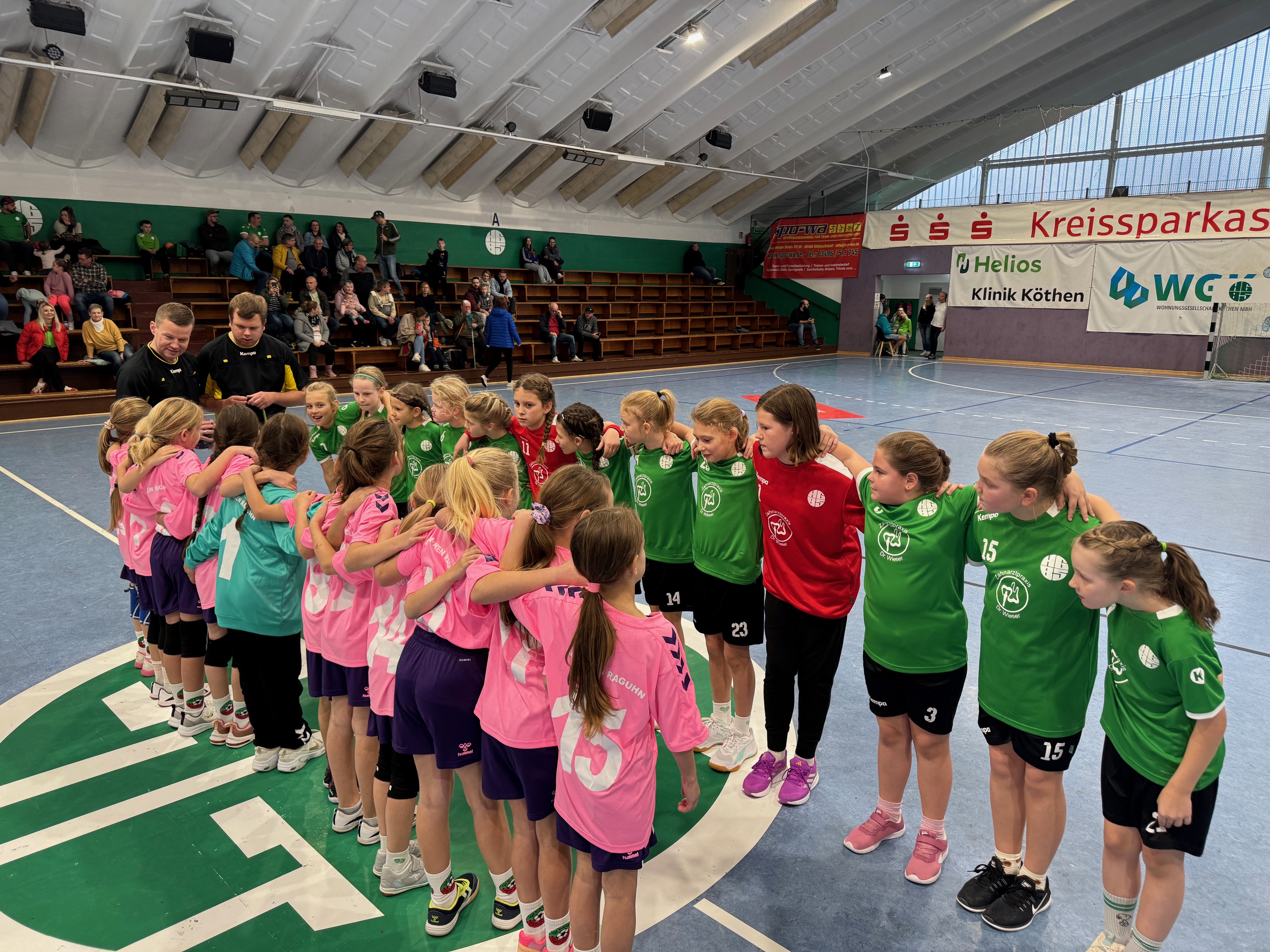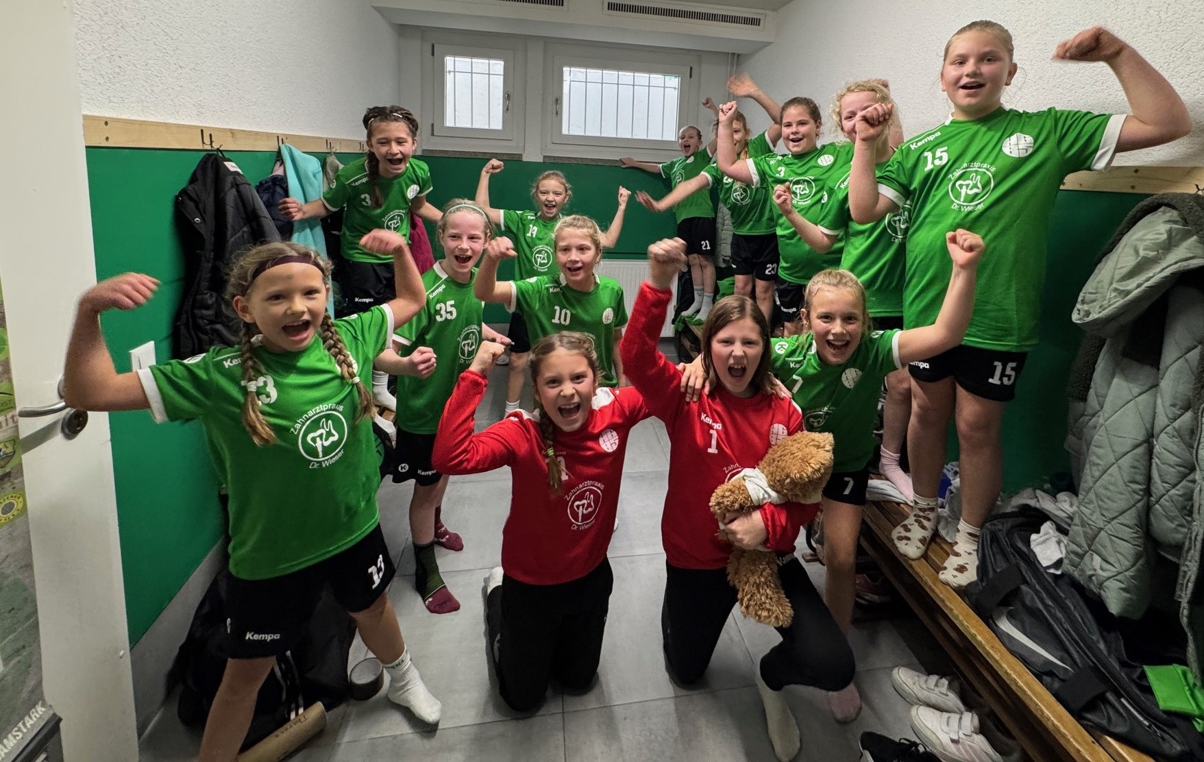 Verdient gewannen die Mädels der weibl. E-Jugend II ihre ersten Ligapunkte vor heimischem Publikum. Von Beginn an gingen die Spielerinnen fokussiert ins Spiel und konnten ihre Fähigkeiten beweisen. Die im Training erlernten spielerischen Möglichkeiten wurden sehr gut umgesetzt und führten zu kontinuierlichen Torerfolgen. Dabei trugen sich gleich mehrere Spielerinnen in die Torschützenliste ein, was Vertrauen für künftige Aufgaben gibt. Eine geschlossen gute Teamleistung und die konzentrierte Abwehr-Torwartleistung sicherte sogar ein Zu Null-Ergebnis. Das war schon beeindruckend anzusehen. Auf Grund des guten Spielverlaufes bekamen auch unerfahrenere Spielerinnen Einsatzzeiten, in denen sie wichtige Spielerfahrung sammeln konnten. Sie bewiesen, dass sich fleißiges Training auszahlt. Danke dem tollen Publikum für die stimmungsvolle Heimkulisse.
