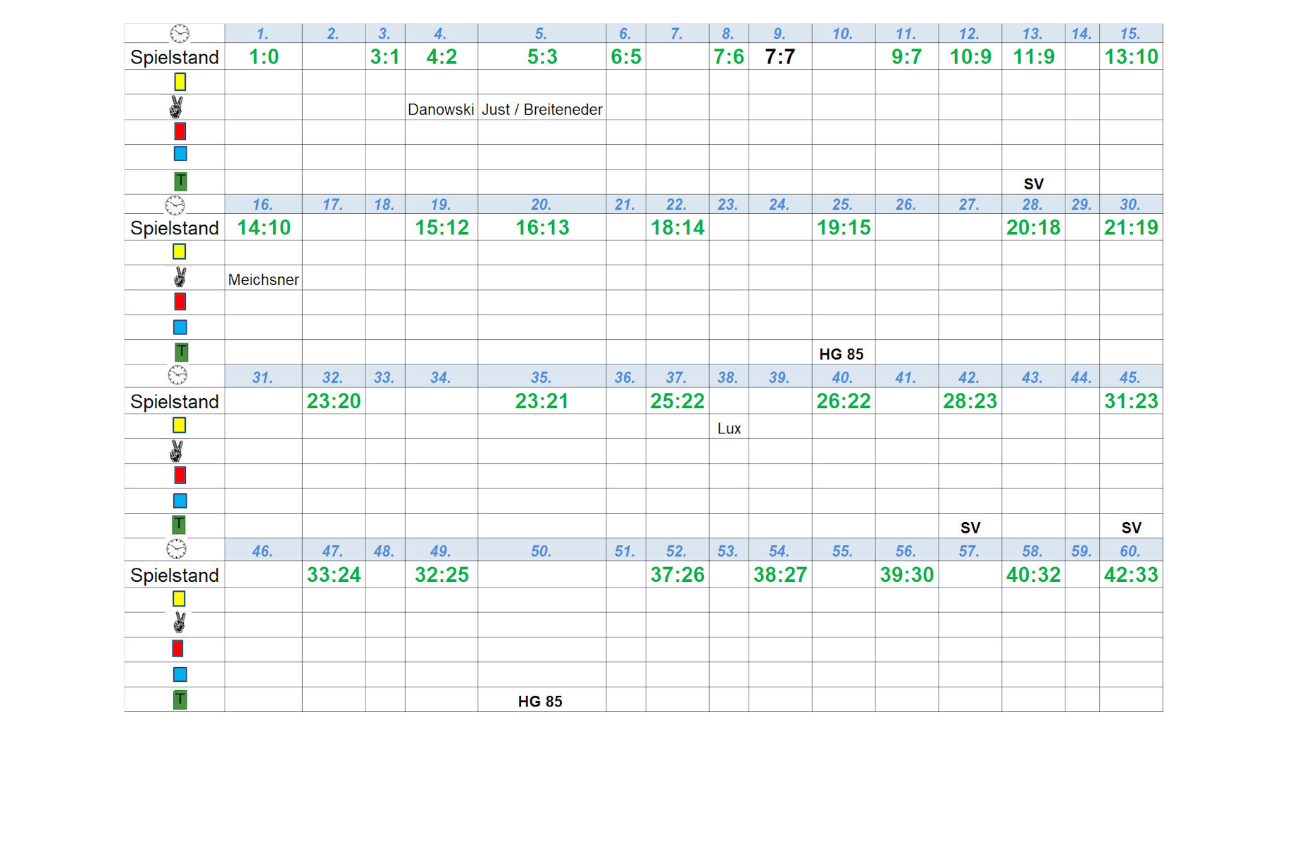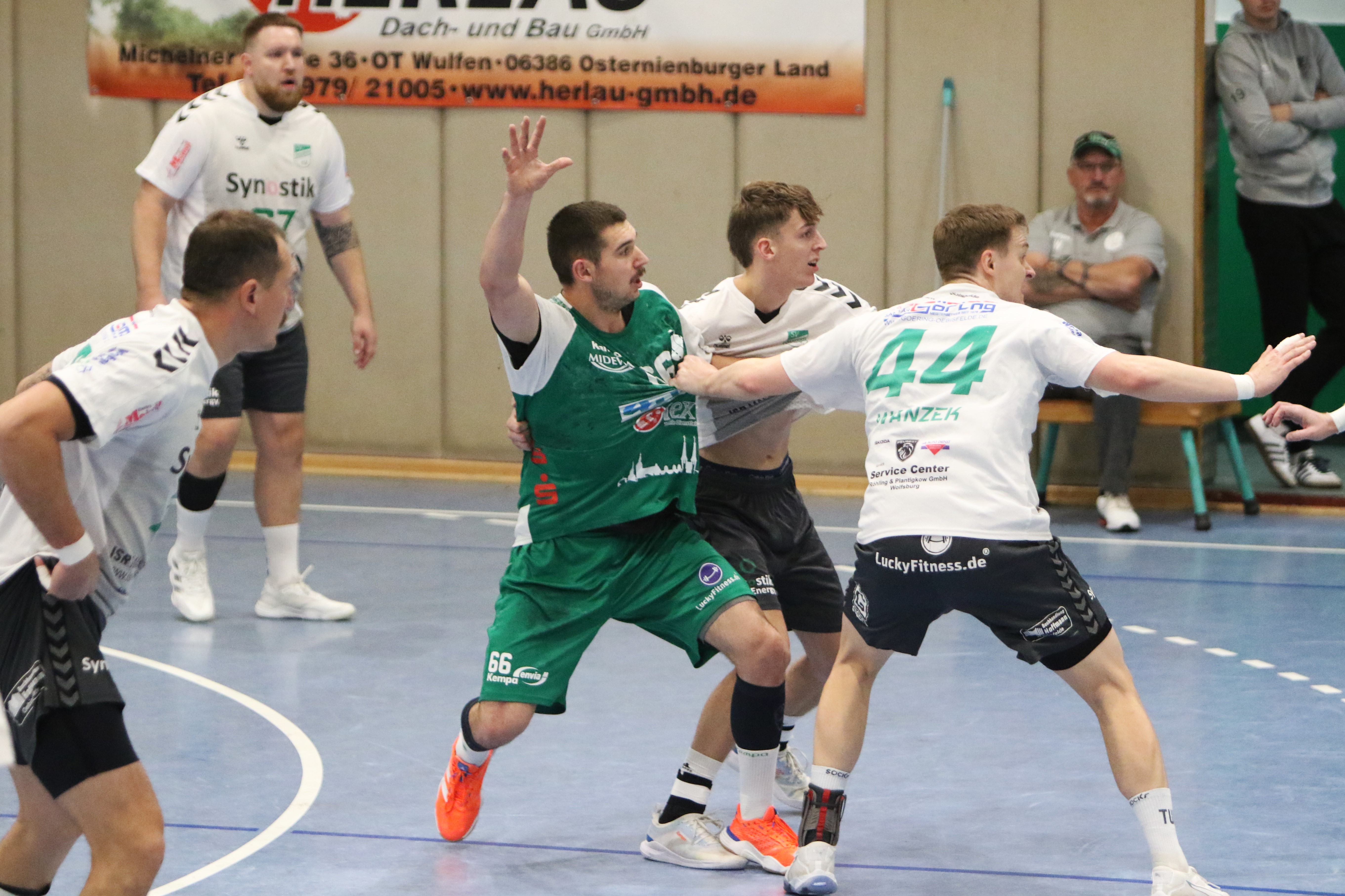 Die Hausherren kamen zügig ins Spiel. In den ersten acht Minuten war jeder Torwurf ein Treffer. Gleiches gelang den Gästen, weil Leonard Serfas unglücklich agierte und folgerichtig von Trainer Martin Lux in der 12. Minute angeordnet, Platz für Christian Kanzler im Tor machen musste. Bis zur Halbzeit hatte Siebenmeter-Garant Frank Grohmann alle drei dem Gastgeber zugesprochenen Strafwürfe sicher verwandelt.