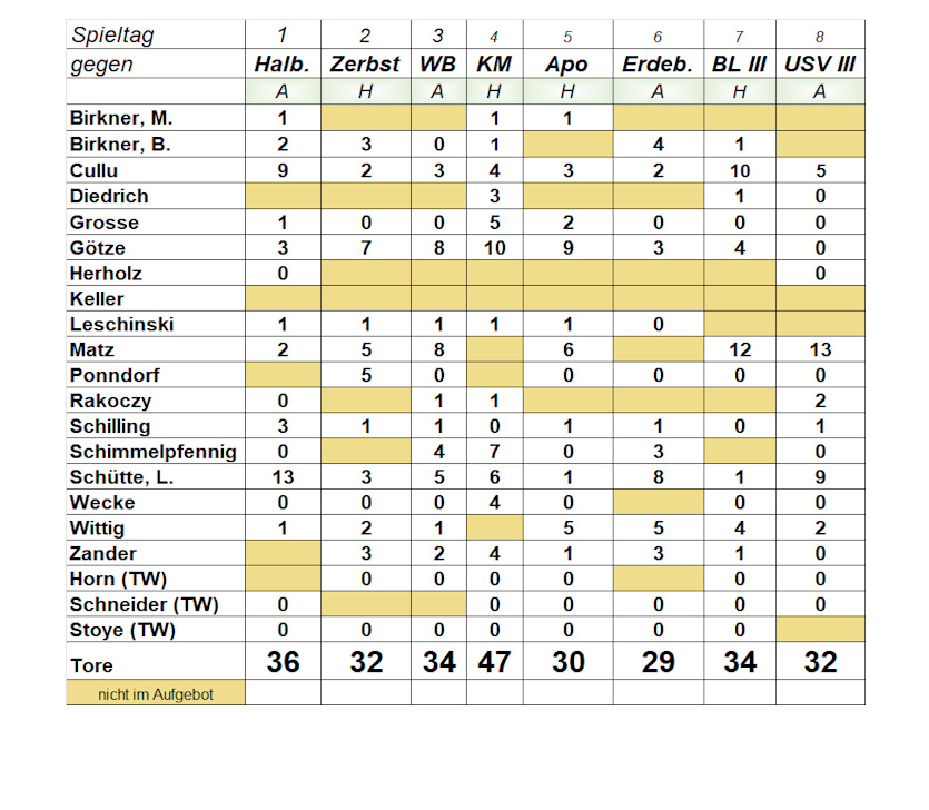 Unter Trainer Helmut Kurrat spielte die Mannschaft in der Saison 1991/92 in der 2.Bundesliga Mitte. In der Spielzeit 1995/96 führte Trainer Heinz Prokop das Team aus der Oberliga Sachsen-Anhalts in die Regionalliga Nord, wo sich die Mannschaft 14 Jahre lang etablierte. Danach kämpfte das Team in der Mitteldeutschen Oberliga unter Trainer Ralf Stojan und belegte dabei den 3. Platz und wurde in der Spielzeit 2012/13 Vize-Meister.