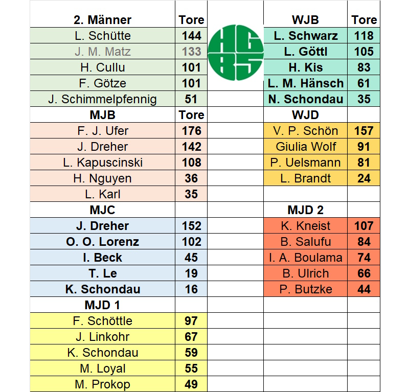 Die erfolgreichsten Werfer in den HG 85-Mannschaften