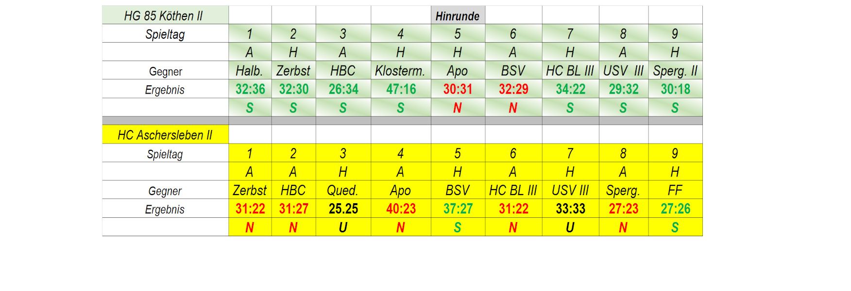 Statistische Vorinformation zum Punktspiel der 2. Männermannschaft gegen den HC Aschersleben II