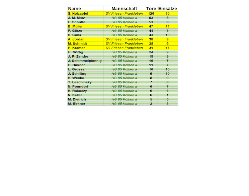 Statistische Vorinformationen zum Punktspiel der 2. Männermannschaft